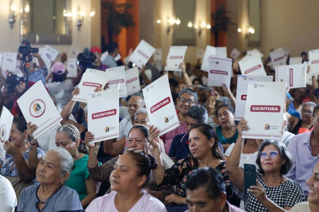 “Hoy se llevan en las manos un papel, pero en el corazón se llevan algo mucho más grande, se llevan tranquilidad, se llevan certeza y se llevan obviamente esa alegría enorme del trabajo y del sacrificio que durante tantos años realizaron. Una escritura, no nada más es un trámite, es la seguridad de que nadie les va a quitar lo que ustedes han construido con ese esfuerzo”, expresó la mandataria.