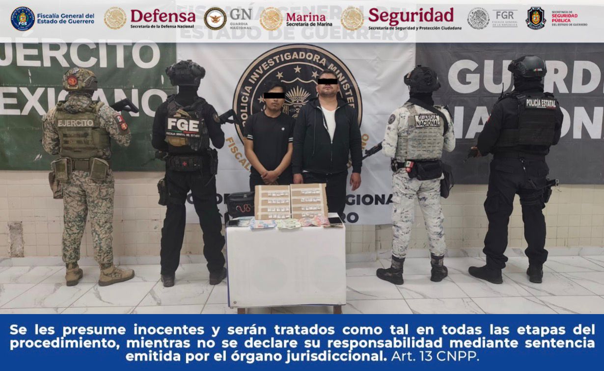 Chilpancingo, Gro., a 24 de enero de 2026.– La Fiscalía General del Estado de Guerrero informa que, en coordinación con DEFENSA, Guardia Nacional (GN), Secretaría de Seguridad y Protección Ciudadana (SSYPC) y Policía Estatal, realizó la detención en flagrancia de Juan “N” y Ángel “N”, derivado de recorridos a pie tierra de prevención y disuasión del delito implementados en el municipio de Chilpancingo de los Bravo, Guerrero.
