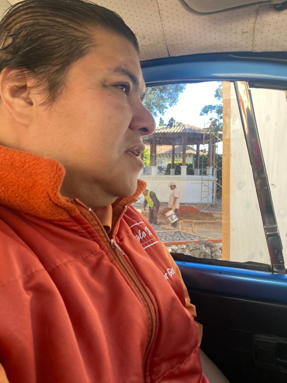 Taxco, Gro.- Trabajadores asignados a la “obra de remodelación del Centro Histórico” de Taxco, sin cuidado alguno y a marrazos, destruyen el tejado del tradicional Kiosco Novo Hispano, considerado patrimonio de los Taxqueños. Así, para justificar la obra, se destruye lo que no era necesario en Taxco. En la gráfica, el periodista José Antonio Mundo Estrada, Director General del Periódico Siglo XXI, testifica la destrucción innecesaria del patrimonio de Taxco.