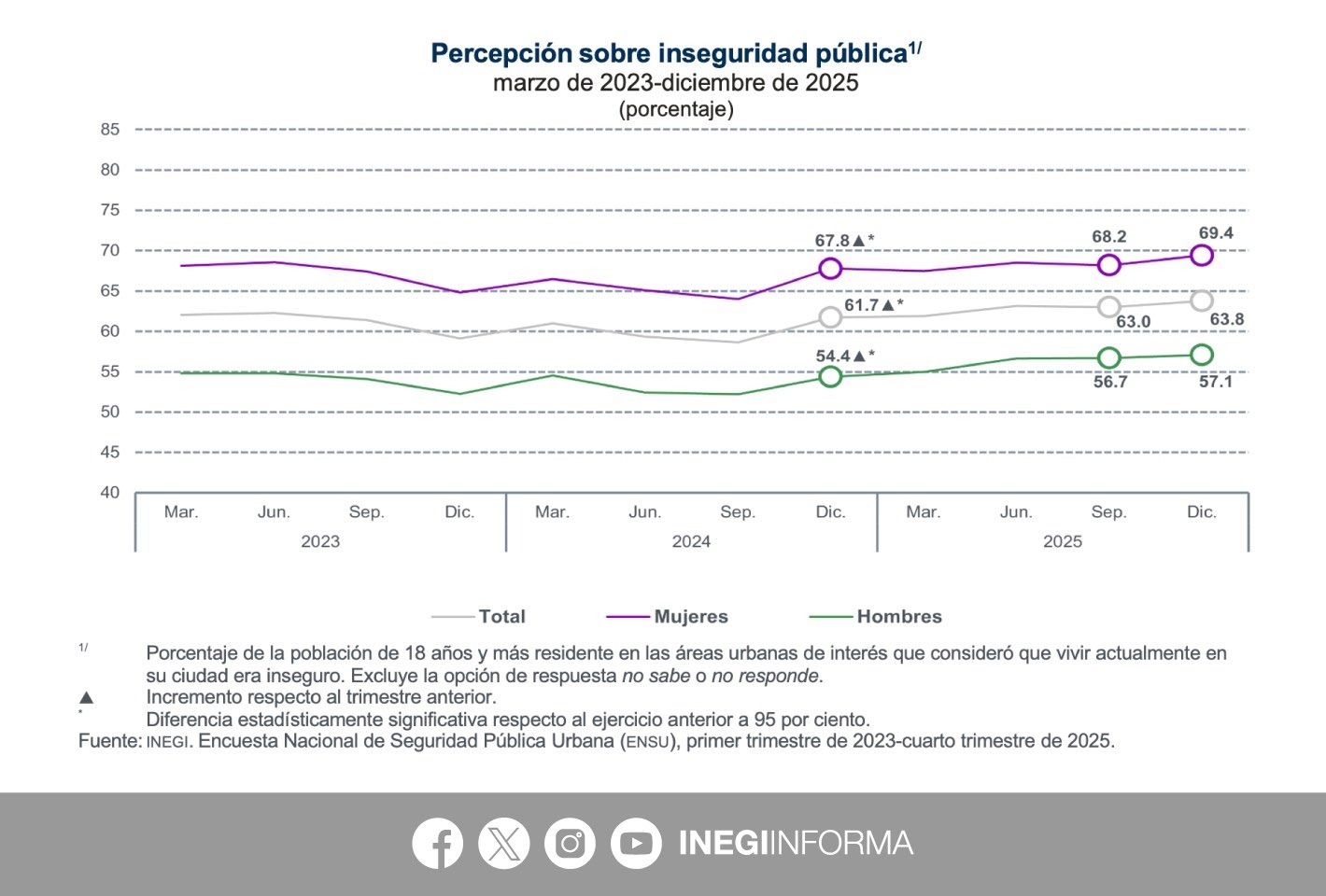 *En diciembre de 2025, 63.8% de la población de 18 años y más consideró inseguro vivir en su ciudad