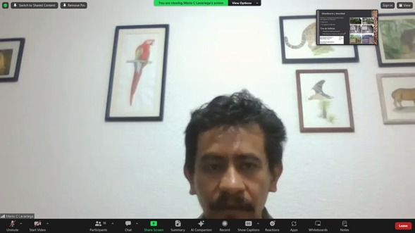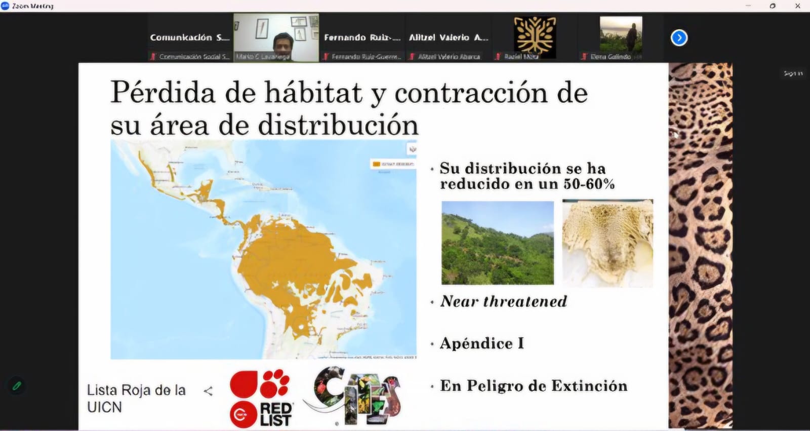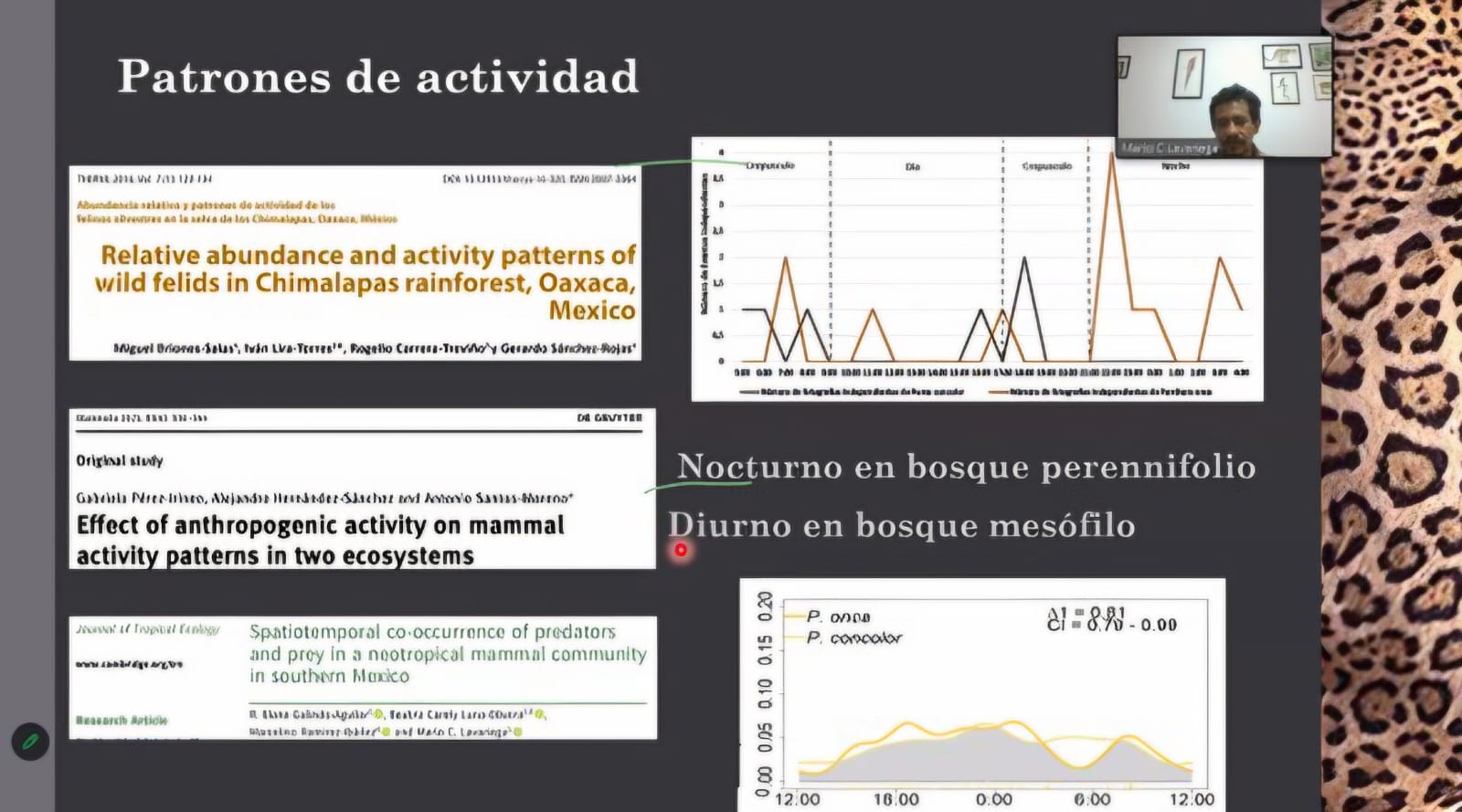 Durante su intervención, compartió avances sobre el estado de las poblaciones de jaguar, los resultados del monitoreo regional y los principales retos que enfrenta la especie en la vertiente del Pacífico. Su trayectoria se distingue por la generación y difusión del conocimiento sobre biodiversidad, el estudio de patrones espaciales y temporales de vertebrados terrestres y la conservación comunitaria de especies amenazadas.