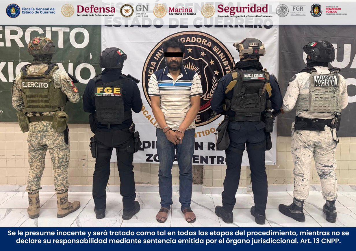 Chilpancingo, Gro., a 2 de febrero de 2026.– La Fiscalía General del Estado de Guerrero informa que, en coordinación con la Secretaría de la Defensa Nacional (DEFENSA), Guardia Nacional (GN), Secretaría de Seguridad y Protección Ciudadana (SSPC) y Policía Estatal, cumplimentó una orden de aprehensión en contra de Ángel “N”, por el delito contra la salud en su modalidad de narcomenudeo, en agravio de la sociedad, en el municipio de Chilpancingo de los Bravo, Guerrero.