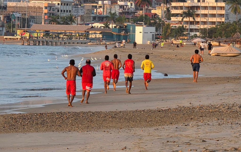 Personal guardavidas de la Promotora de Playas Acapulco reanudó sus entrenamientos tras el puente vacacional, con ejercicios de resistencia, acondicionamiento físico y fortalecimiento.