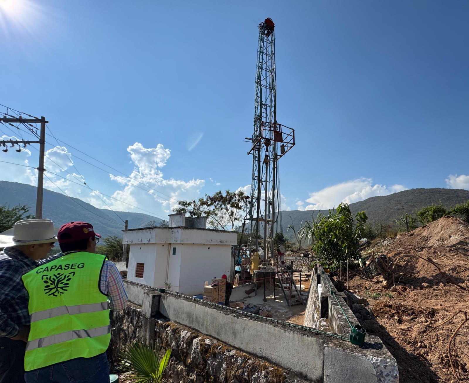 Chilpancingo, Gro. 4 de febrero 2026. La Comisión de Agua Potable, Alcantarillado y Saneamiento del Estado de Guerrero (CAPASEG) construye un pozo profundo en Tepechicotlán, municipio de Chilpancingo, a fin de incrementar el abasto de agua para la capital.