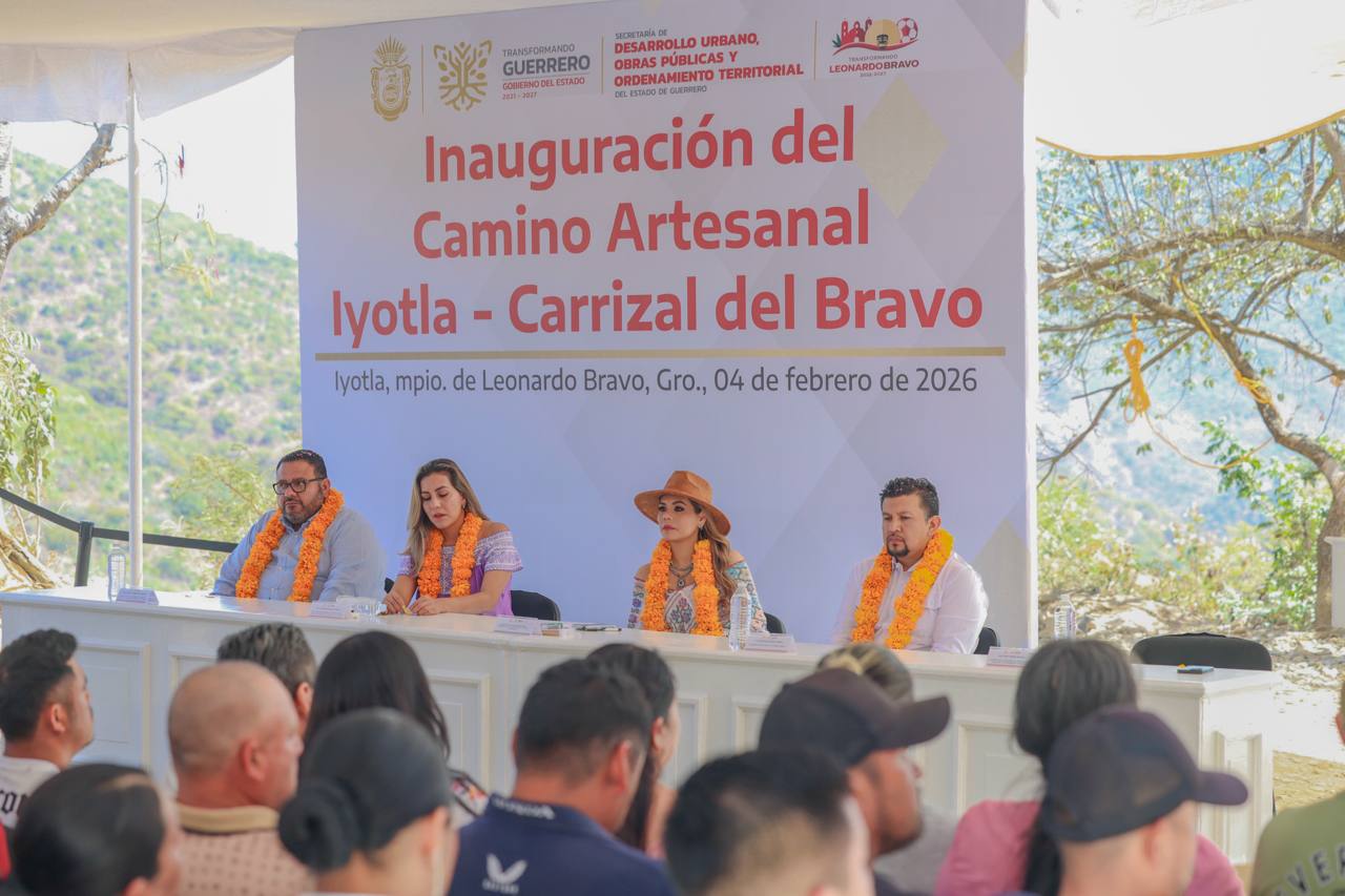 Chilpancingo, Gro., 4 de febrero de 2026.- La gobernadora Evelyn Salgado Pineda inauguró el primer camino artesanal en la región Sierra que conecta a las comunidades de Iyotla y Carrizal de Bravo, en el municipio de Leonardo Bravo, como parte de las acciones para fortalecer la conectividad y el desarrollo de Guerrero.