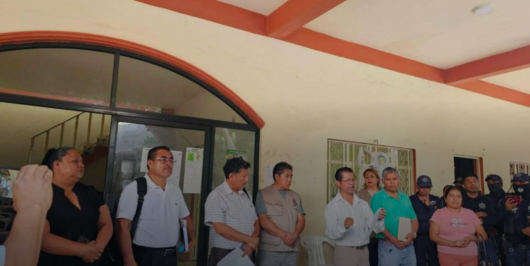 Hace días fue retenida por nueve horas por órdenes del presidente municipal- Este día con temor se presentó en el edificio municipal para firmar documentos