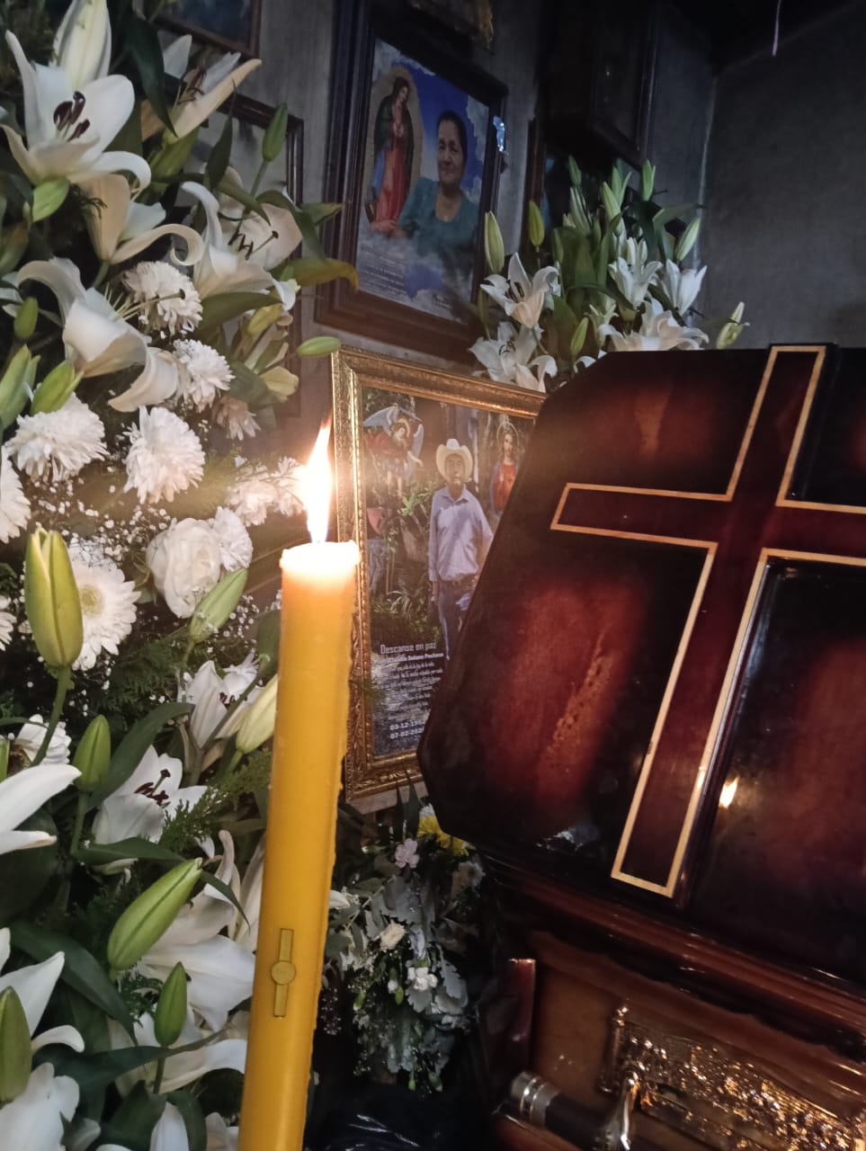 En la casa paterna, el aroma del copal se mezcla con la cera de las velas y las veladoras que han hecho llegar muchas personas. Ante el ataúd de madera, la familia rinde en un solidario acto de amor, una despedida mientras en la cabecera de la caja, los mira la foto del Profesor Claudio.