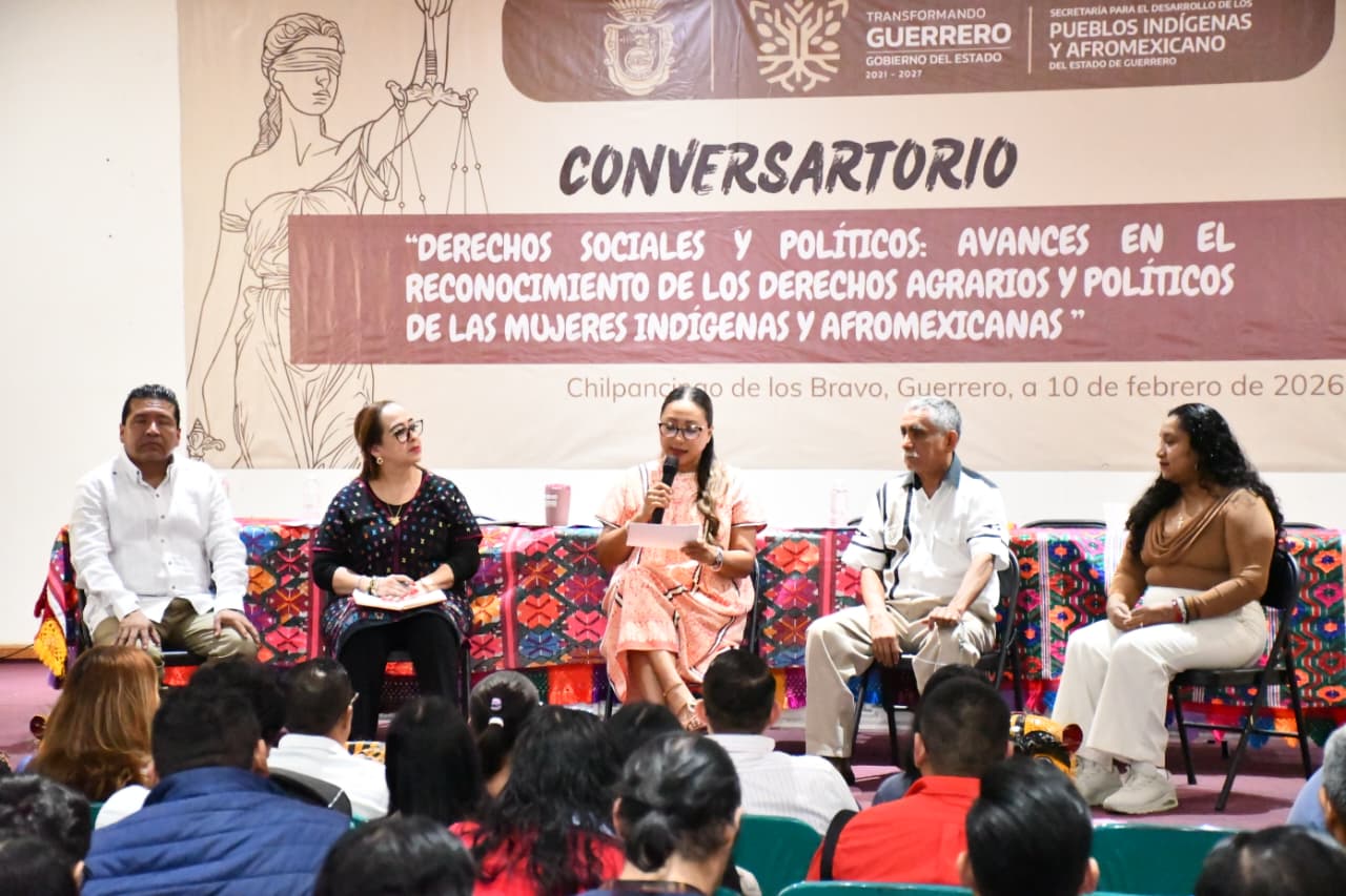 Chilpancingo, Gro, 10 de febrero de 2026.- En el marco de las actividades de clausura de la Semana Jurídica 2026, la Secretaría para el Desarrollo de los Pueblos Indígenas y Afromexicanos (SEDEPIA), que encabeza Abel Bruno Arriaga llevó a cabo el conversatorio “Derechos sociales y políticos avances en el reconocimiento de los derechos agrarios y políticos de las mujeres indígenas y afromexicanas”.