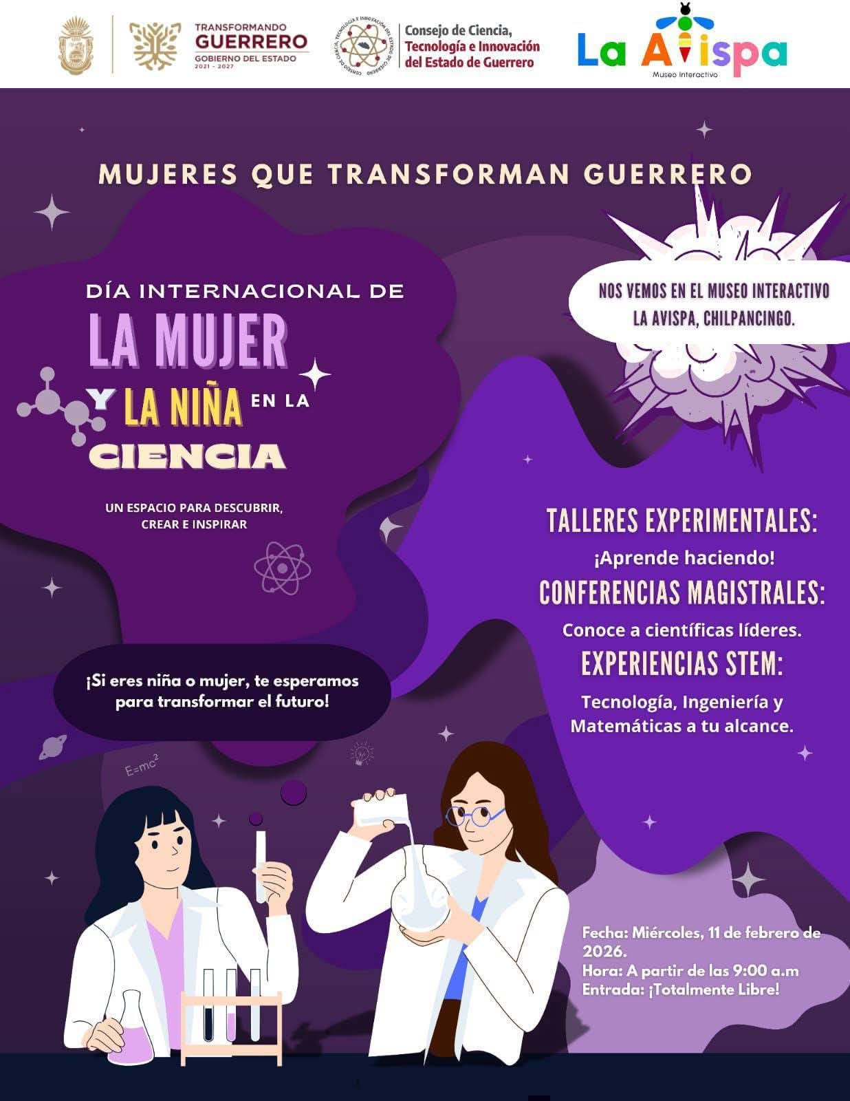 Este 11 de febrero se llevará a cabo la feria “Mujeres que Transforman Guerrero”, en el marco del Día Internacional de la Mujer y la Niña en la Ciencia, con el objetivo de impulsar la participación femenina en áreas científicas y tecnológicas.