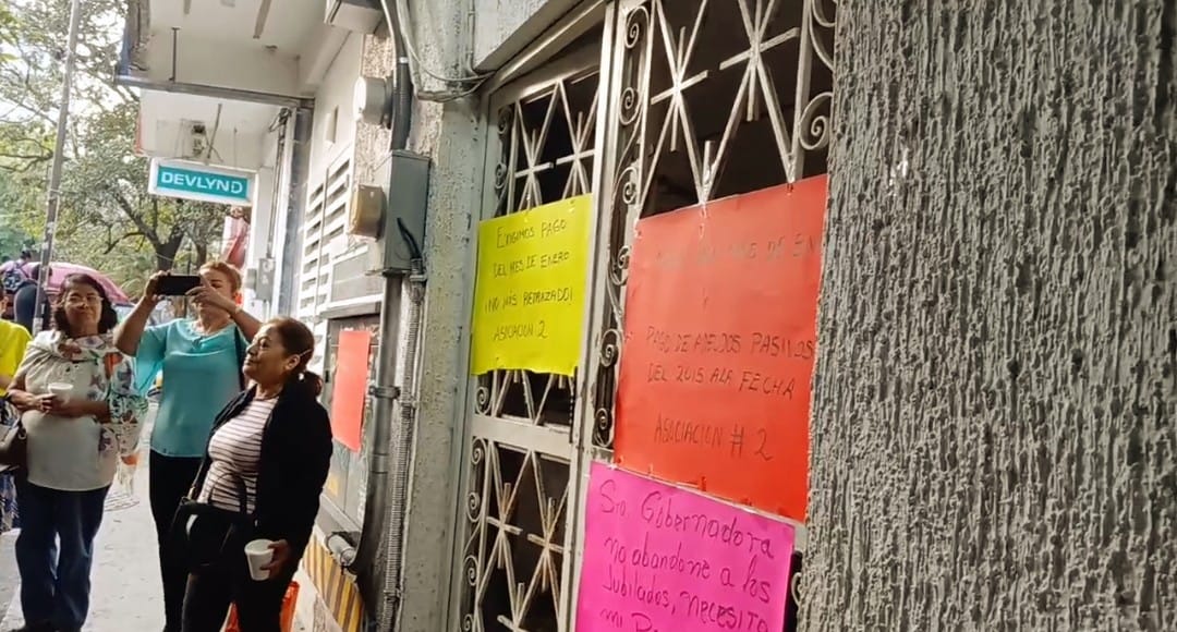 Chilpancingo, Guerrero., Febrero 11-2026.- En demanda del pago de su pensión del mes de enero, Jubilados y Pensionados del ISSSPEG cerraron las oficinas de ese instituto ubicadas en esta Capital.