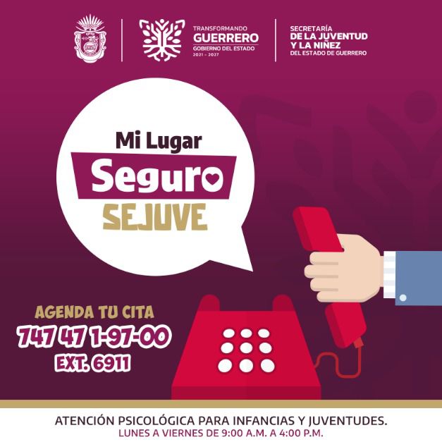En un esfuerzo por acercar los servicios de salud mental a la juventud guerrerense, por indicaciones de la gobernadora Evelyn Salgado Pineda, la Secretaría de la Juventud y la Niñez impulsa “Mi Lugar Seguro”, un consultorio de atención psicológica diseñado para brindar acompañamiento profesional sin costo a niñas, niños, adolescentes y jóvenes.