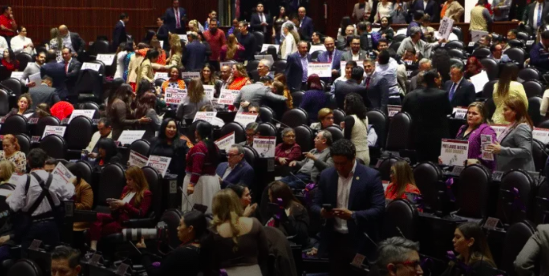 SemMéxico / El Sol de México, Cd. de México, 26 de noviembre, 2025.- A pesar de tener consignas diferentes por sus posturas políticas, ocho diputadas federales se adueñaron de la tribuna de la Cámara de Diputados para conmemora el Día Internacional de la Eliminación de la Violencia contra las Mujeres.