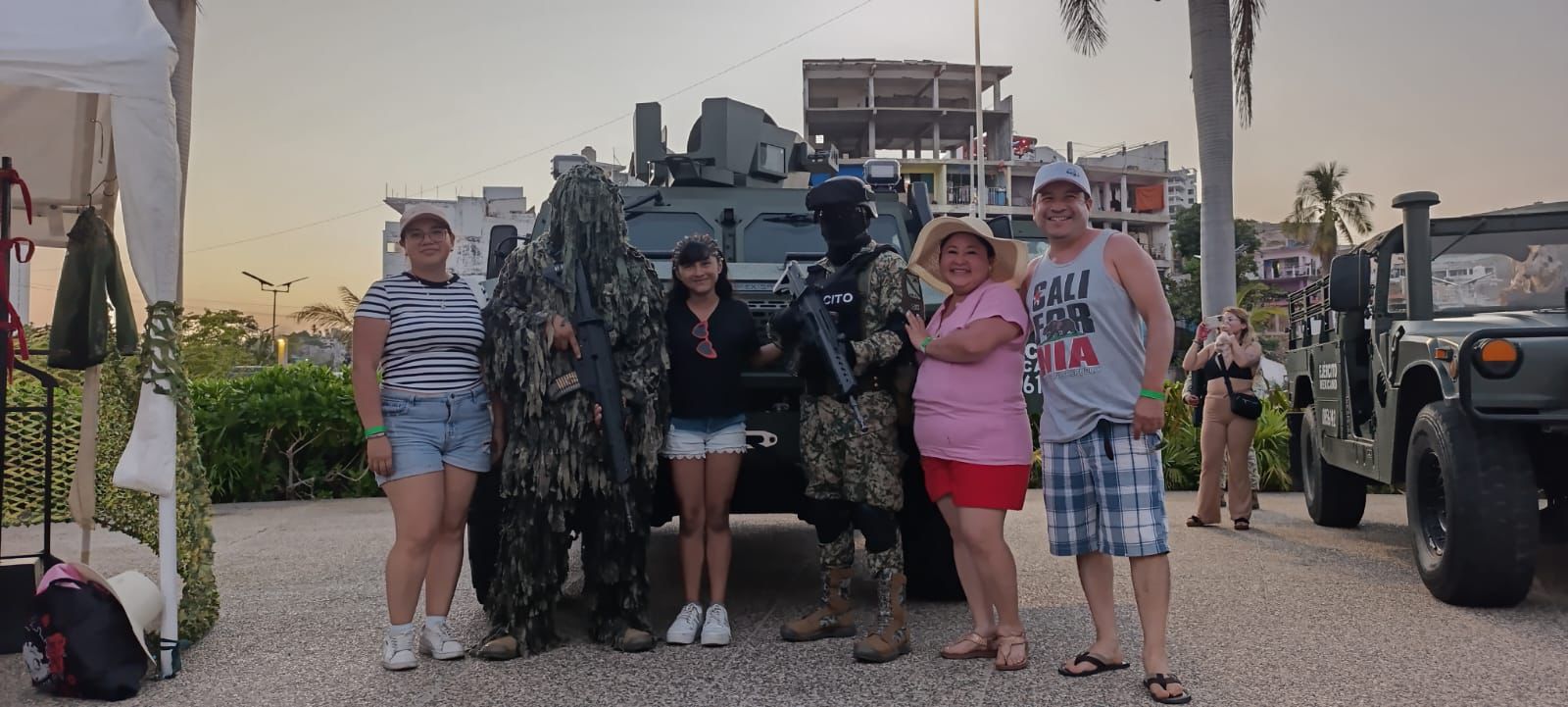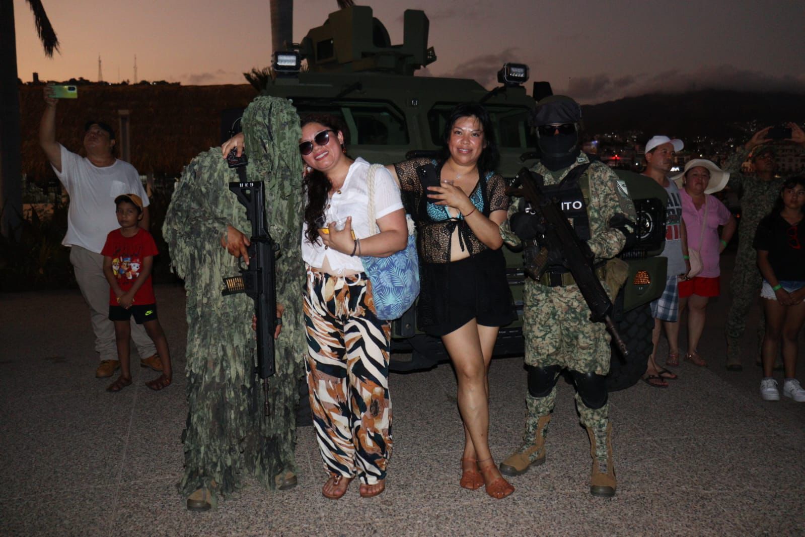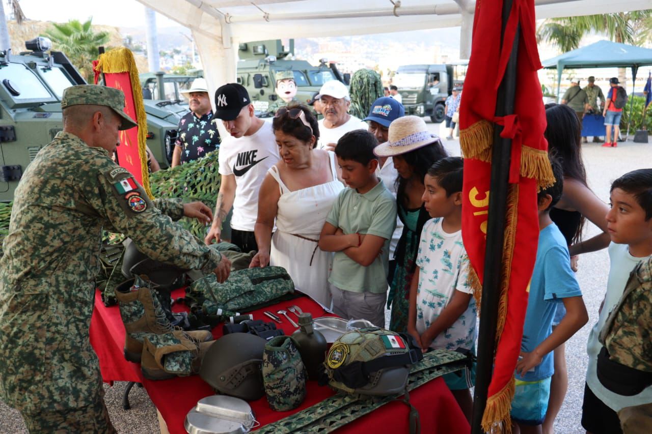 Acapulco, Gro. 15 de febrero del 2026. En el marco de los festejos por el Día del Ejército Mexicano, personal del Instituto Armado instaló módulos de exhibición en la Rotonda de los Hombres Ilustres, ubicada en las inmediaciones de Playa Tlacopanocha, en el puerto de Acapulco.