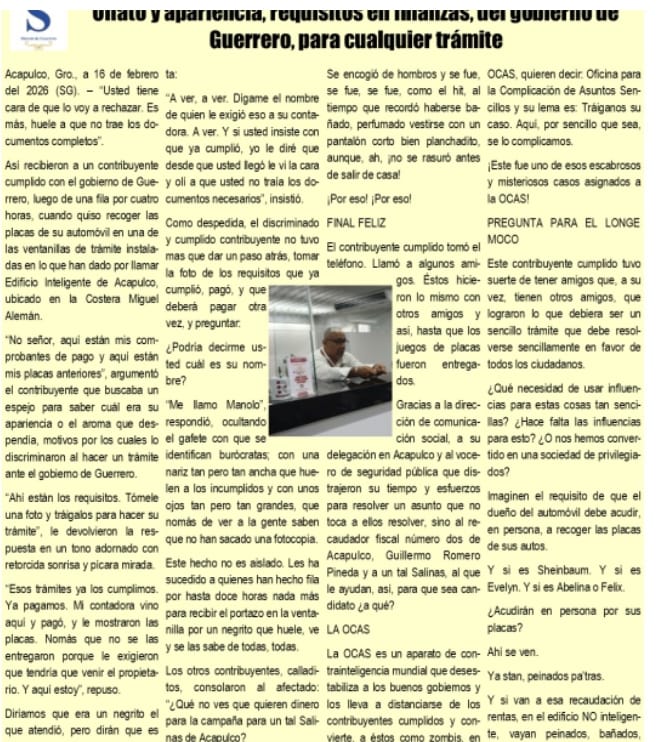 Acapulco, Gro., a 16 de febrero del 2026 (SG). – “Usted tiene cara de que lo voy a rechazar. Es más, huele a que no trae los documentos completos”.