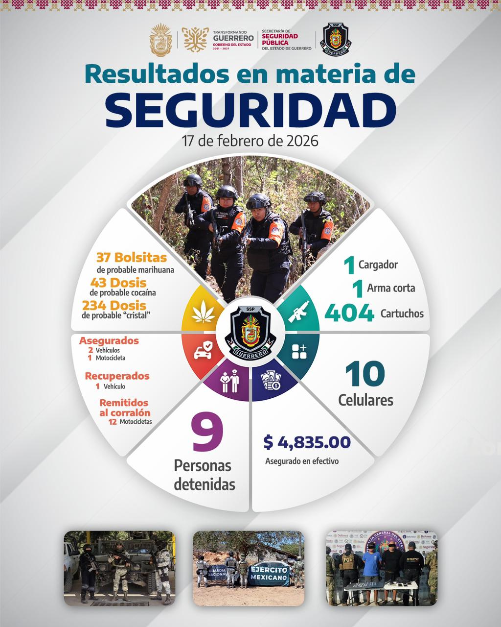 Estos resultados son reflejo del trabajo permanente para fortalecer la seguridad y preservar la tranquilidad en Guerrero.