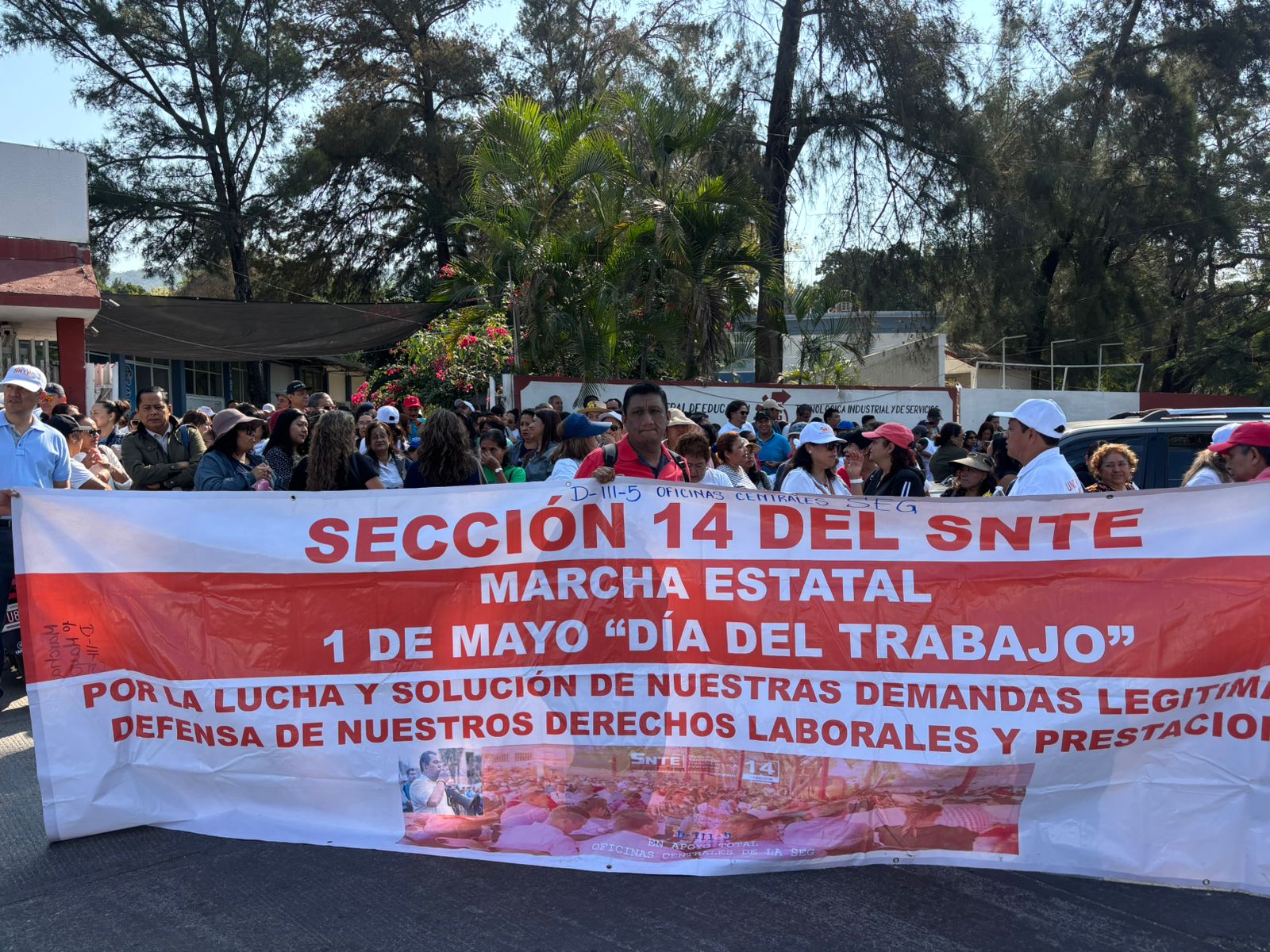 Chilpancingo, Guerrero., Febrero 17-2026.- El Dirigente de la Sección 14 del SNTE, Silvano Palacios Salgado, dijo a la base trabajadora de la educación que la directiva apoya las causas justas y que por ello participa en la movilización para pedir el pago de adeudos.