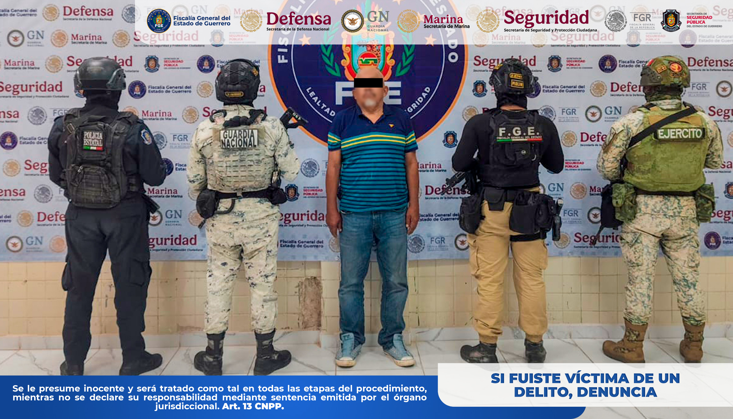 Chilpancingo, Gro., a 19 de febrero de 2026.– La Fiscalía General del Estado de Guerrero informa que, en coordinación con DEFENSA, Guardia Nacional (GN), Secretaría de Seguridad y Protección Ciudadana (SSPC) y Policía Estatal (SSPGro), cumplimentó una orden de aprehensión en contra de Tomás “N”, por el delito de abuso sexual de personas menores de edad, en agravio de una víctima de identidad reservada, en el poblado Carrizal de la Vía, municipio de Chilpancingo, Guerrero.