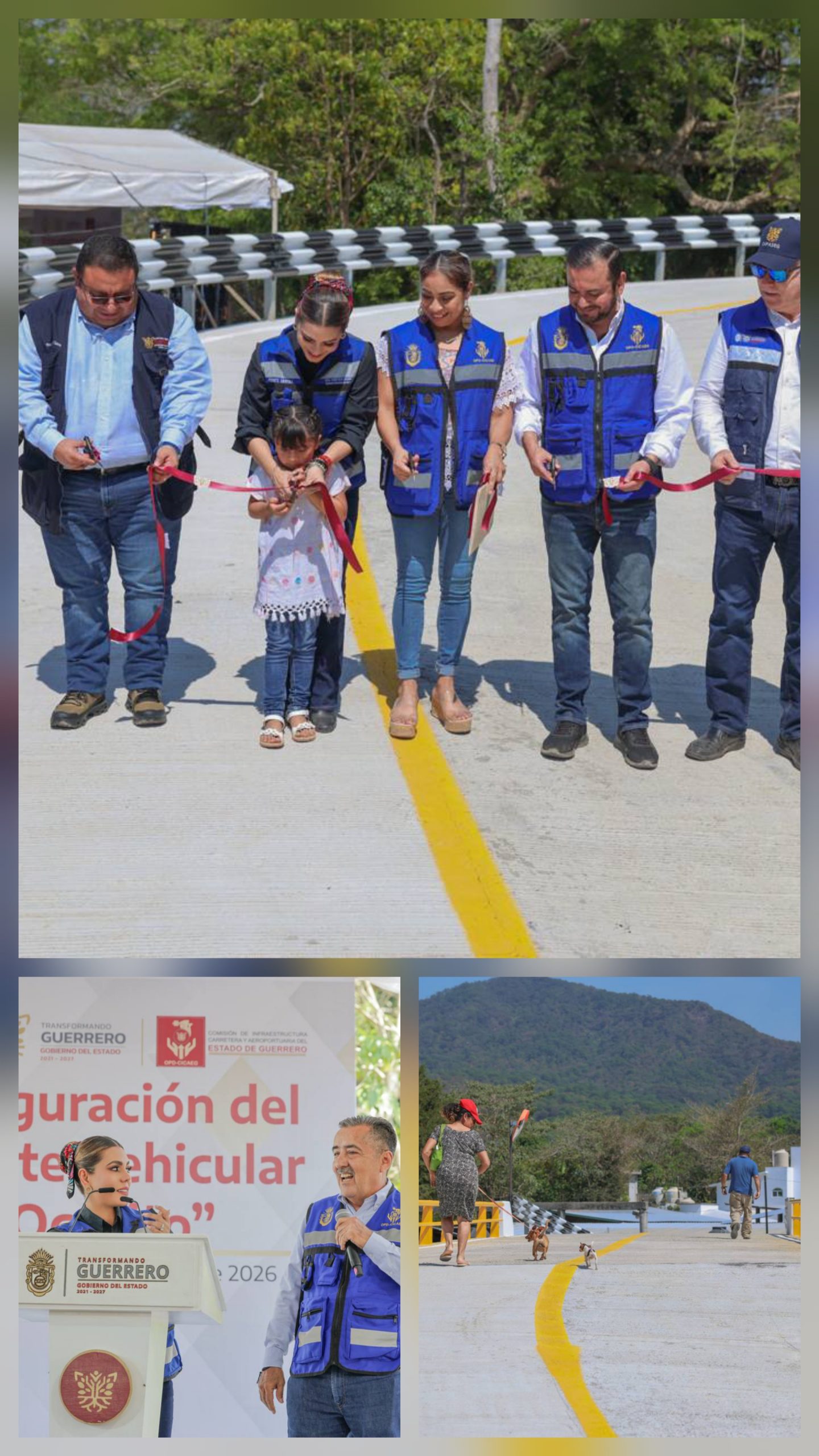 Durante una gira de trabajo en El Ocotito, donde estuvieron presentes vecinos de la comunidad y poblados aledaños, la mandataria cortó el listón inaugural del puente vehicular “Ocotito” en el punto conocido como el Vado de Barrio Viejo, que representó una inversión de 8.8 millones de pesos, beneficiando a 30 mil 500 habitantes de Tlahuizapa, Carrizal de Pinzón, Cajelitos, Rincón de la Vía, Zoyatepec, Iscuinatoyac, Coacoyulillo y La Esperanza.