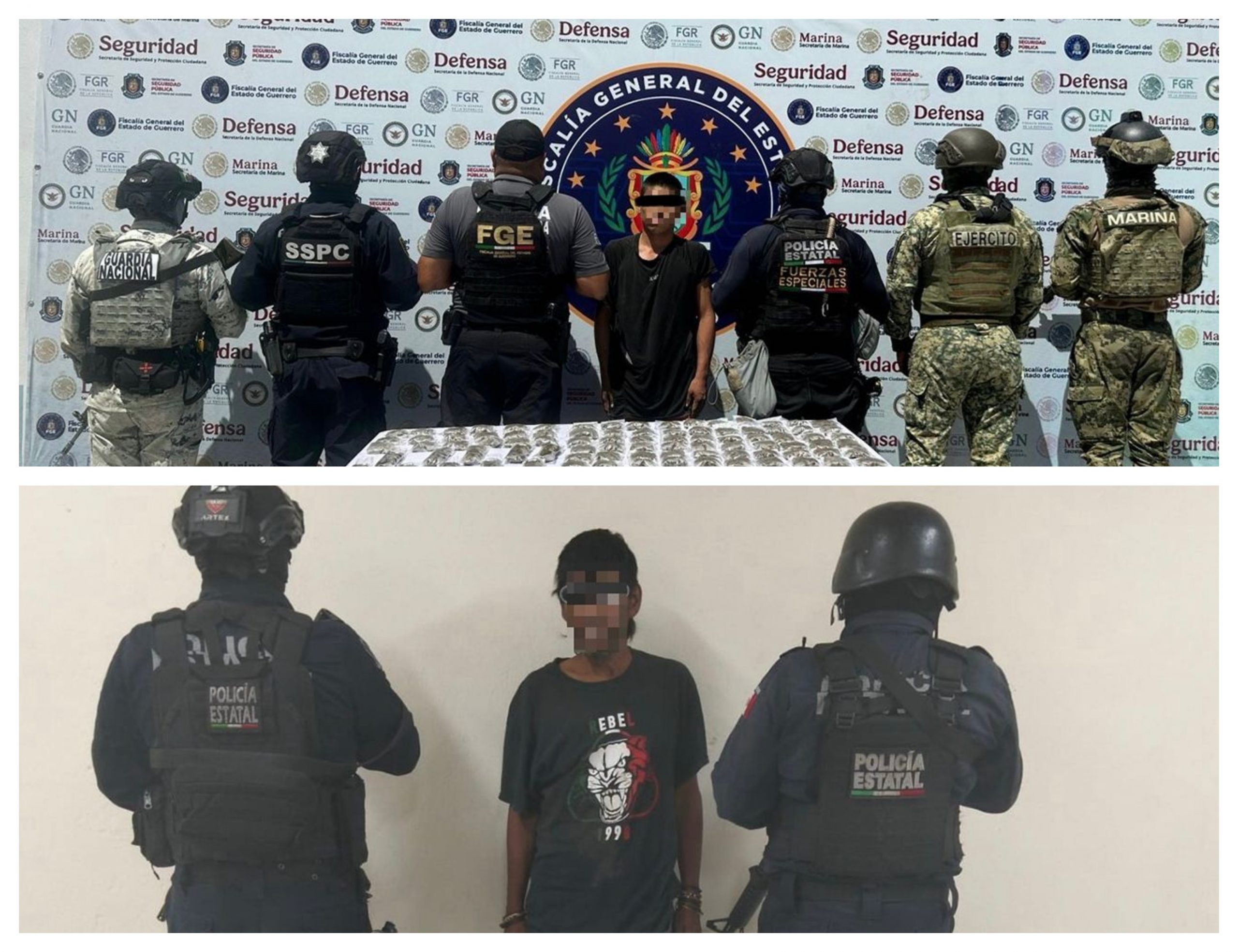 Chilpancingo, Guerrero; 27 de febrero de 2026. La Policía Estatal, en dos hechos distintos, detuvo a tres personas en posesión de presuntas dosis de estupefacientes en el municipio de Acapulco.