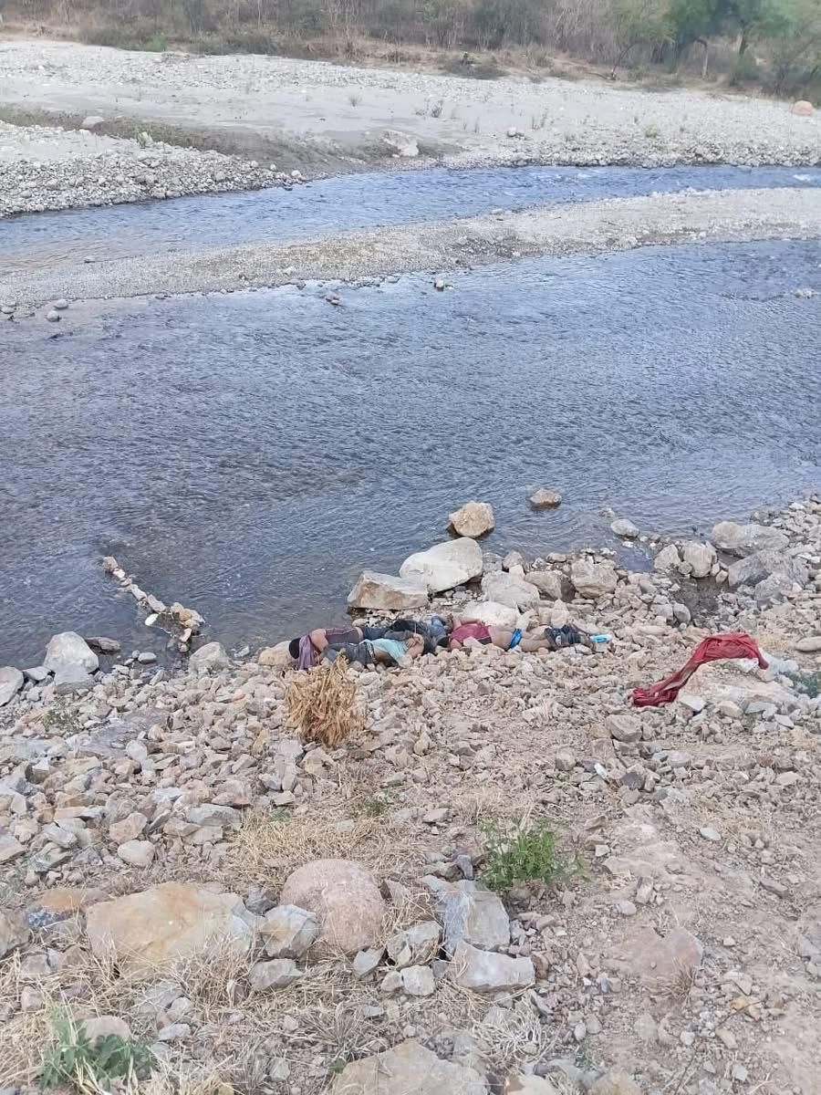 A un lado del cauce de ese rio, que presenta una corriente de agua importante, estaban los cuatro cuerpos que presentaban huellas visibles de haber sufrido tortura y golpes, que podría ser causa de muerte.