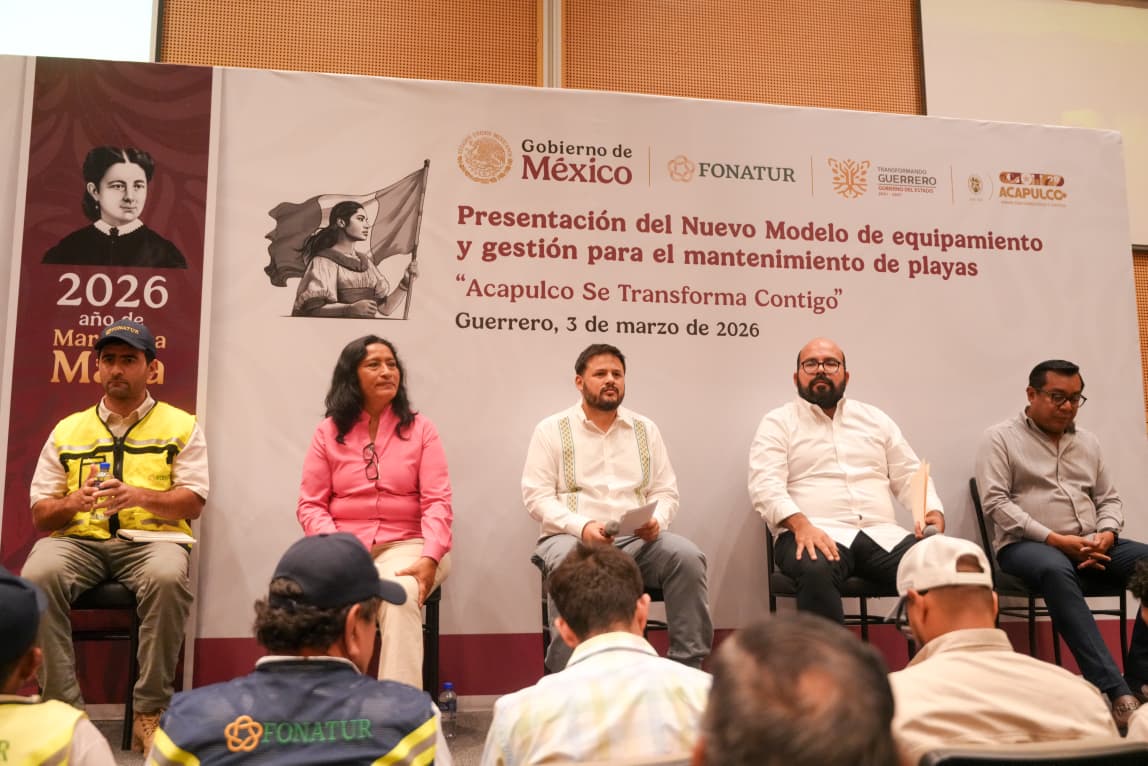 Acapulco, Gro., 03 de marzo de 2026.- El puerto inicia una etapa histórica en la gestión de su litoral con la presentación del Nuevo Modelo de Equipamiento y Mantenimiento de Playas “Acapulco se Transforma Contigo”, iniciativa del Gobierno de México a través del Fondo Nacional de Fomento al Turismo (Fonatur), organismo encargado de impulsar el desarrollo turístico en el país, que garantiza conservación, ordenamiento y desarrollo integral y representa un logro impulsado por la presidenta Abelina López Rodríguez, quien destacó la aplicación completa de los recursos, la limpieza permanente, accesos dignos y proyectos sostenibles.