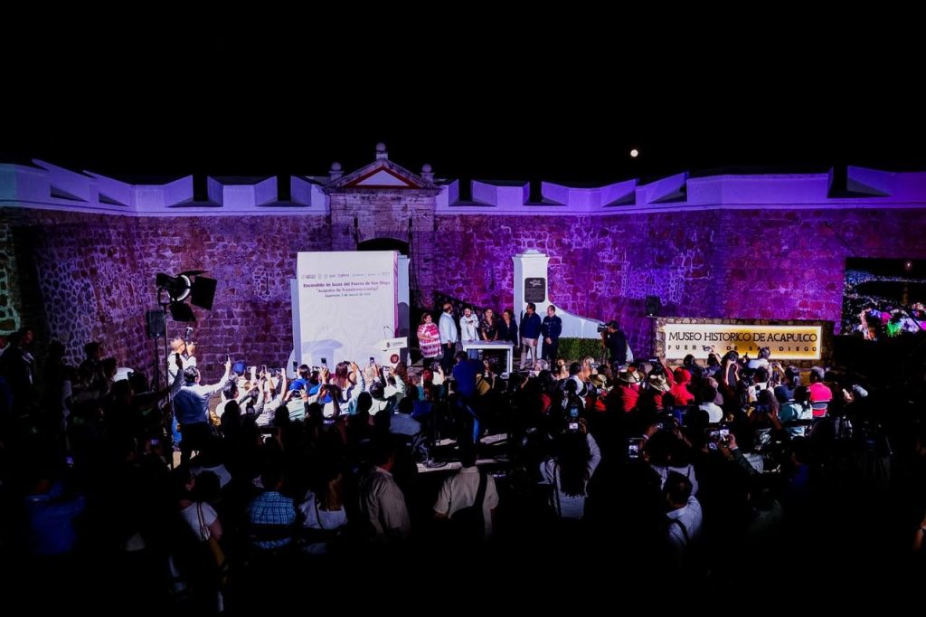 Acapulco, Gro., 3 de marzo de 2026.- “Por su crónica, trascendencia y significado, nuestro Fuerte de San Diego es indiscutible ícono del maravilloso puerto de Acapulco. Y un recordatorio de que los pueblos que conocen su historia, jamás se dejan borrar, son pueblos valientes, son pueblos resilientes”, señaló la gobernadora Evelyn Salgado Pineda durante el evento de Encendido de Luces de este lugar histórico.
