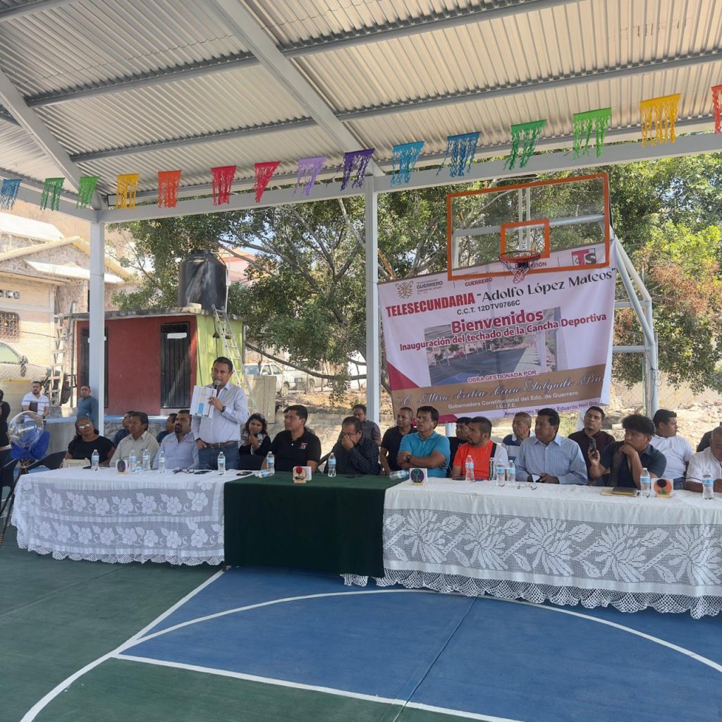 Ameyaltepec, Mpio. de Eduardo Neri., 05 de marzo de 2026.- Como parte de las acciones de fortalecimiento de la infraestructura educativa que se llevan a cabo en las ocho regiones del estado, el Instituto Guerrerense de la Infraestructura Física Educativa (IGIFE) construyó en esta comunidad una cancha techada de usos múltiples en la escuela telesecundaria “Adolfo López Mateos”.