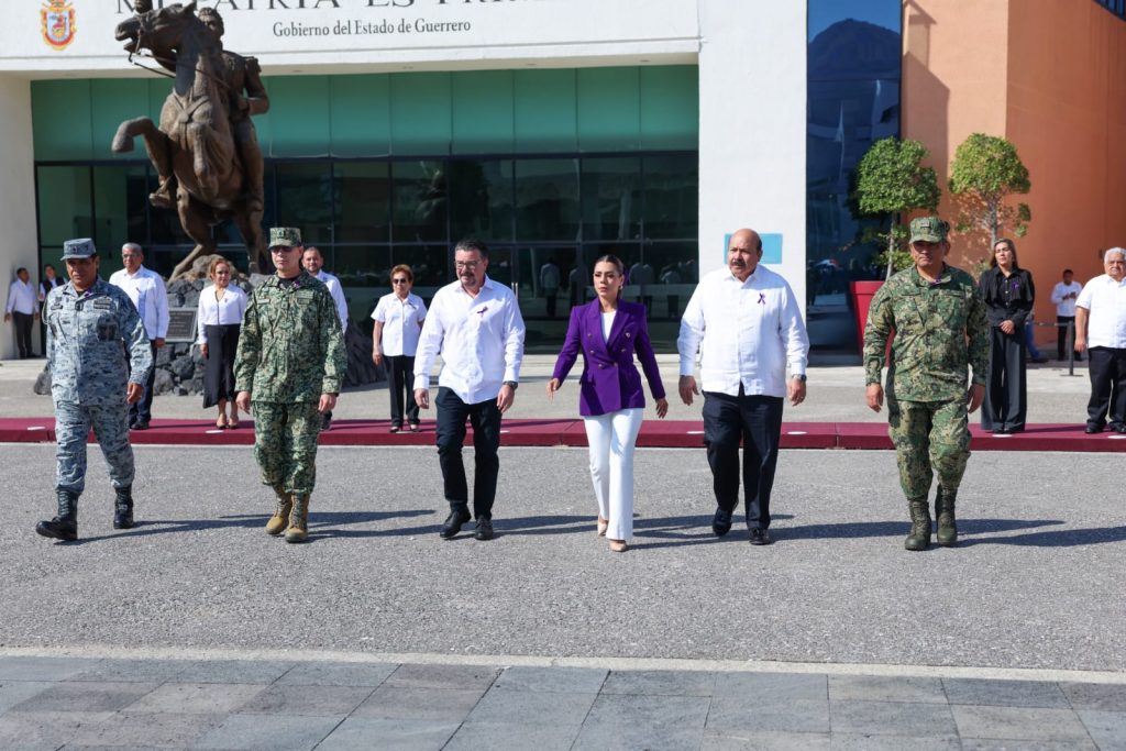 *Encabeza la gobernadora el izamiento de bandera en Casa del Pueblo con el llamado a seguir transformando a Guerrero con justicia, paz y bienestar