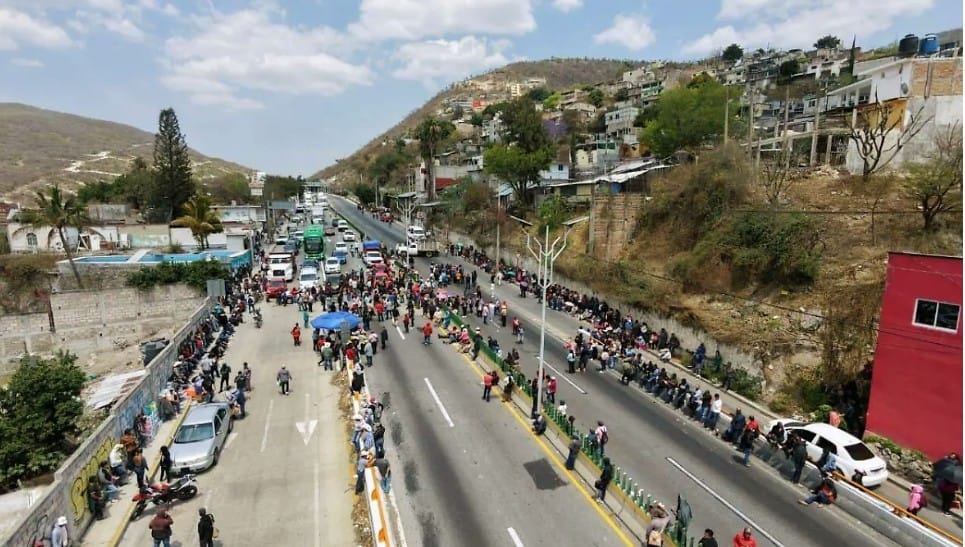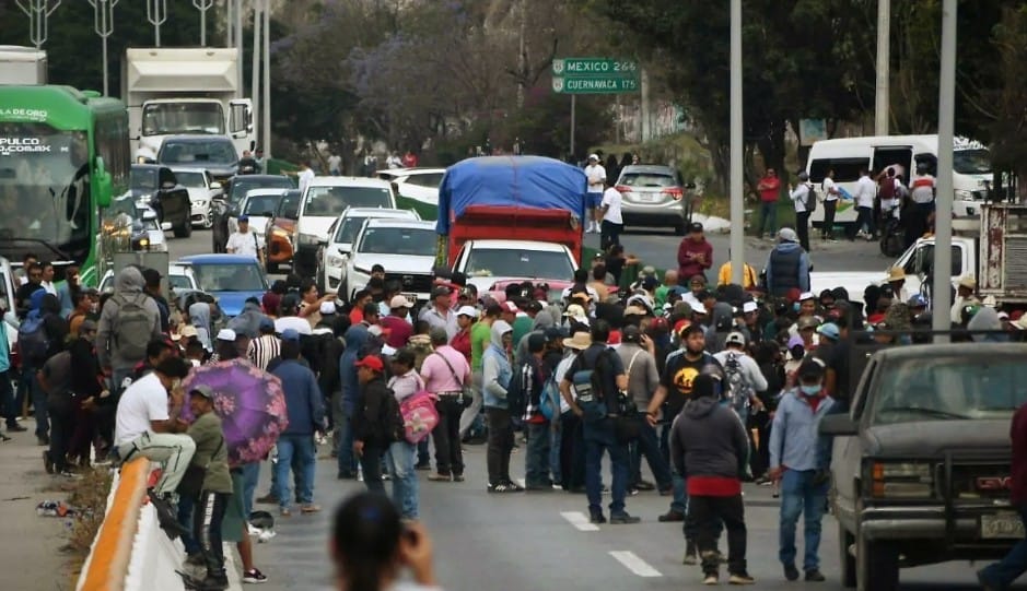 Habitantes de comunidades de la sierra de Chilpancingo tomaron por completo la Autopista del Sol en la parte norte de la capital del estado de Guerrero, a la altura del crucero de Chichihualco.