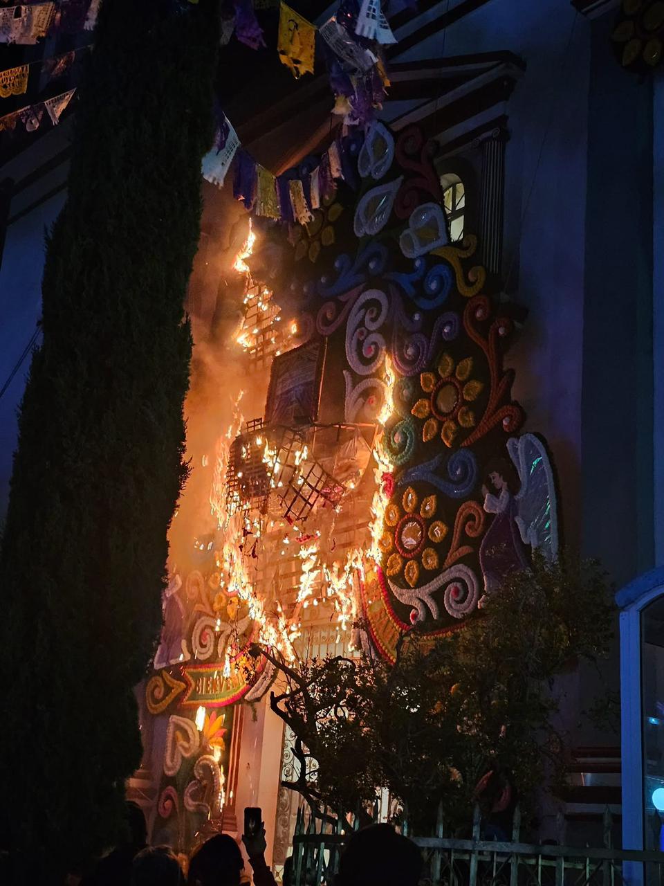 El arco de promesa realizado en el Estado de México, con una altura aproximada de 6 metros, se incendió.