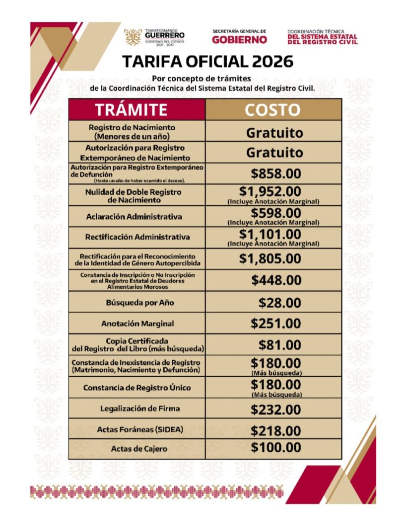 Chilpancingo, Gro., 13 de marzo de 2026.– Con la finalidad de garantizar el derecho a la identidad y facilitar el acceso a servicios registrales a los guerrerenses que viven fuera del estado, el gobierno de Guerrero llevará a cabo del 21 al 23 de marzo una Jornada Especial de Corrección de Actas en Baja California Sur.