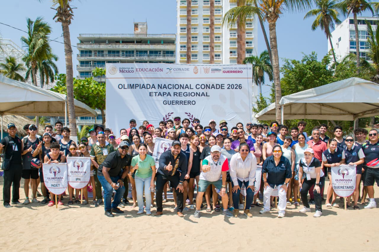 Acapulco, Gro., 13 de marzo de 2026.- Como parte de la estrategia de impulso al deporte y a la actividad turística y contando con el respaldo de la gobernadora Evelyn Salgado Pineda, el director general del Instituto del Deporte de Guerrero (INDEG), Jesús Calderón Segura, encabezó la ceremonia de inauguración de la etapa Regional de Voleibol de Playa de la Olimpiada Nacional CONADE 2026, teniendo como escenario las playas del puerto de Acapulco.