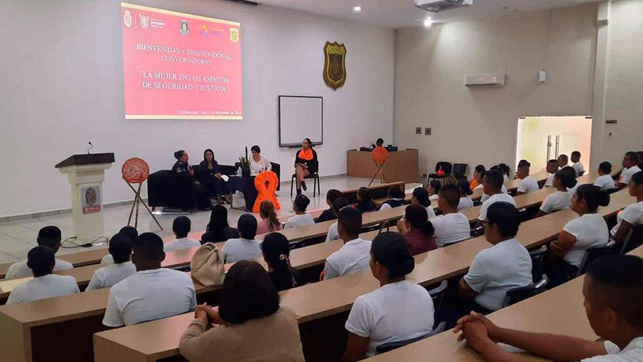 Chilpancingo, Gro., 5 de diciembre de 2024.- En el marco de la campaña 16 Días de Activismo Contra la Violencia de Género, la Secretaría de Seguridad Pública del estado (SSP), a través de la Unidad de Género, en coordinación con la Universidad Policial (UNIPOL), llevó a cabo el conversatorio “La Mujer en los ámbitos de seguridad y justicia”.