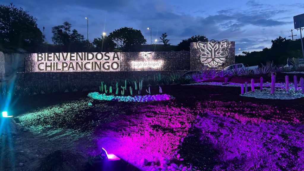 Como elemento identitario, se construyó un muro con el letrero “Bienvenidos a Chilpancingo”, elaborado en gavión y complementado con elementos representativos de la cultura y la identidad local.