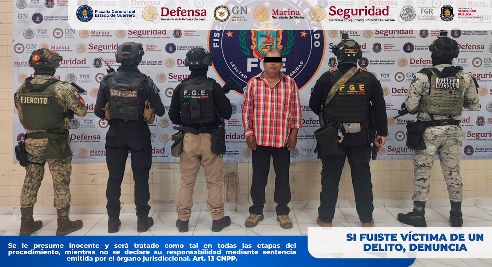 La acción fue realizada por personal ministerial, en coordinación con la Secretaría de la Defensa Nacional (DEFENSA), Guardia Nacional (GN), Secretaría de Seguridad y Protección Ciudadana (SSPC) y Policía Estatal (SSPGro), quienes lograron ubicar y detener al imputado en dicho municipio.