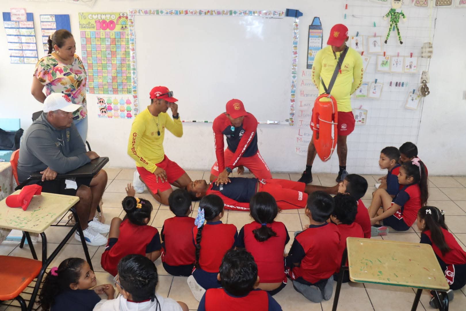 *Fomentan seguridad en playas entre niños de Acapulco*Acapulco, Gro., 26 de marzo de 2026.— Guardavidas de la Promotora de Playas Acapulco, a cargo de Alfredo Lacunza de la Cruz, realizaron una jornada educativa con alumnos de la Escuela Primaria “Gregorio Torres Quintero”, con el propósito de fortalecer la cultura de prevención y seguridad en el mar.La actividad incluyó pláticas informativas sobre técnicas básicas de rescate y medidas preventivas para evitar accidentes en zonas de playa, así como recomendaciones para que niñas y niños respeten las indicaciones del personal salvavidas.Durante la sesión, se llevaron a cabo demostraciones prácticas y dinámicas participativas, generando un ambiente educativo que permitió a los estudiantes reforzar lo aprendido de manera directa y divertida.Estas acciones forman parte de las estrategias impulsadas por el gobierno estatal para promover entornos seguros y la prevención de riesgos, especialmente en destinos turísticos como Acapulco.