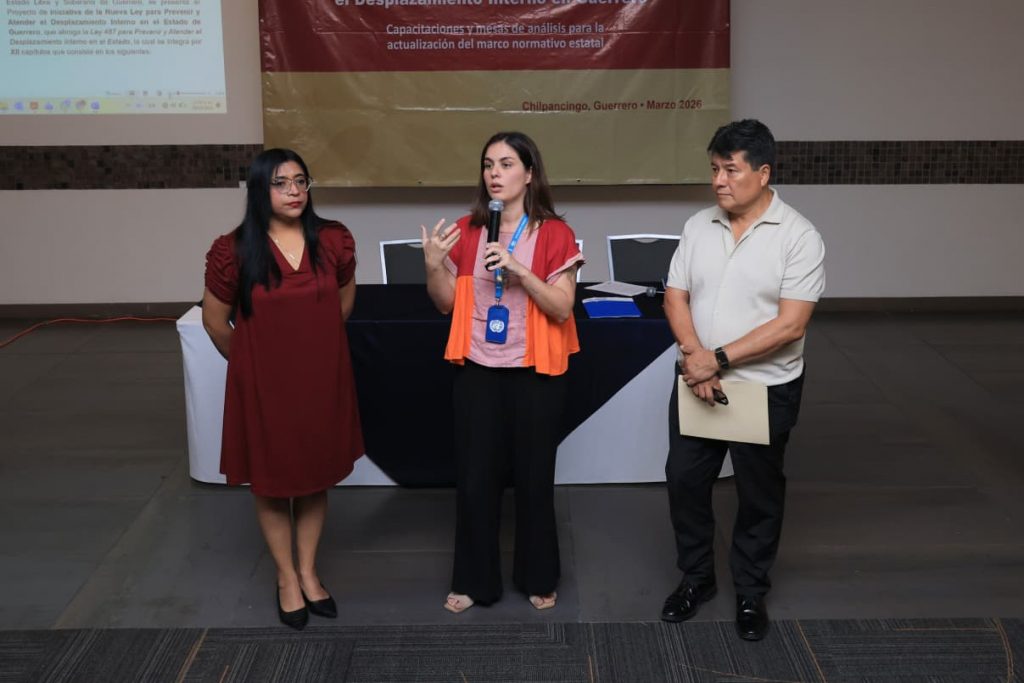 Guerrero fortalece su marco legal para atender el desplazamiento interno con enfoque en derechos humanosChilpancingo, Gro., 26 de marzo de 2026.- Con el objetivo de garantizar una respuesta más efectiva, articulada y centrada en los derechos humanos ante el desplazamiento interno, el Gobierno del Estado de Guerrero avanza en la actualización de su marco legal, con el acompañamiento de organismos internacionales y la participación de instituciones estatales.Como parte de este proceso, la Secretaría General de Gobierno, encabezada por Anacleta López Vega, en coordinación con la Agencia de las Naciones Unidas para los Refugiados (ACNUR) y el Comité Internacional de la Cruz Roja (CICR), instaló mesas temáticas de consulta con autoridades de distintas dependencias, enfocadas en fortalecer la iniciativa de la nueva Ley para Prevenir y Atender el Desplazamiento Interno en el estado.Los trabajos se desarrollan a partir de tres ejes principales: “Gobernanza y coordinación interinstitucional”, “Protección, acceso a la justicia y atención diferenciada” y “Financiamiento y sostenibilidad institucional”, lo que permite generar un diálogo técnico sobre el proyecto de iniciativa de ley para atender este fenómeno de desplazamiento interno.Durante su intervención, López Vega reconoció el acompañamiento de los organismos internacionales, destacando que su participación ha sido fundamental para enriquecer la propuesta legislativa y fortalecer su enfoque humanitario, priorizando la dignidad de las personas en situación de desplazamiento.Asimismo, subrayó que estos espacios contribuyen a construir un modelo de gobernanza que prioriza la prevención, la atención integral y la generación de soluciones duraderas, en congruencia con la visión de la gobernadora Evelyn Salgado Pineda.