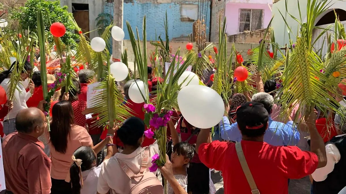 Cientos de feligreses participaron en el Domingo de Ramos que celebra en la parroquia de San Judas Tadeo, la cual, se encuentra en la colonia Javier Mina y concentra a otros asentamientos cercanos que participan en la misa y la tradicional bendición de palmas.