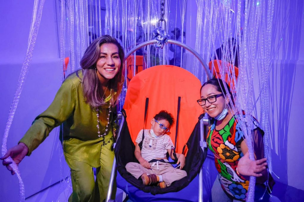 De igual manera, se puso nuevamente en funcionamiento el cuarto de estimulación multisensorial, un espacio terapéutico diseñado para favorecer la estimulación de los sentidos a través de estímulos visuales, auditivos y táctiles, en un ambiente controlado que permite promover la relajación, la atención, la percepción sensorial y la coordinación de las y los pacientes que reciben terapias especializadas.