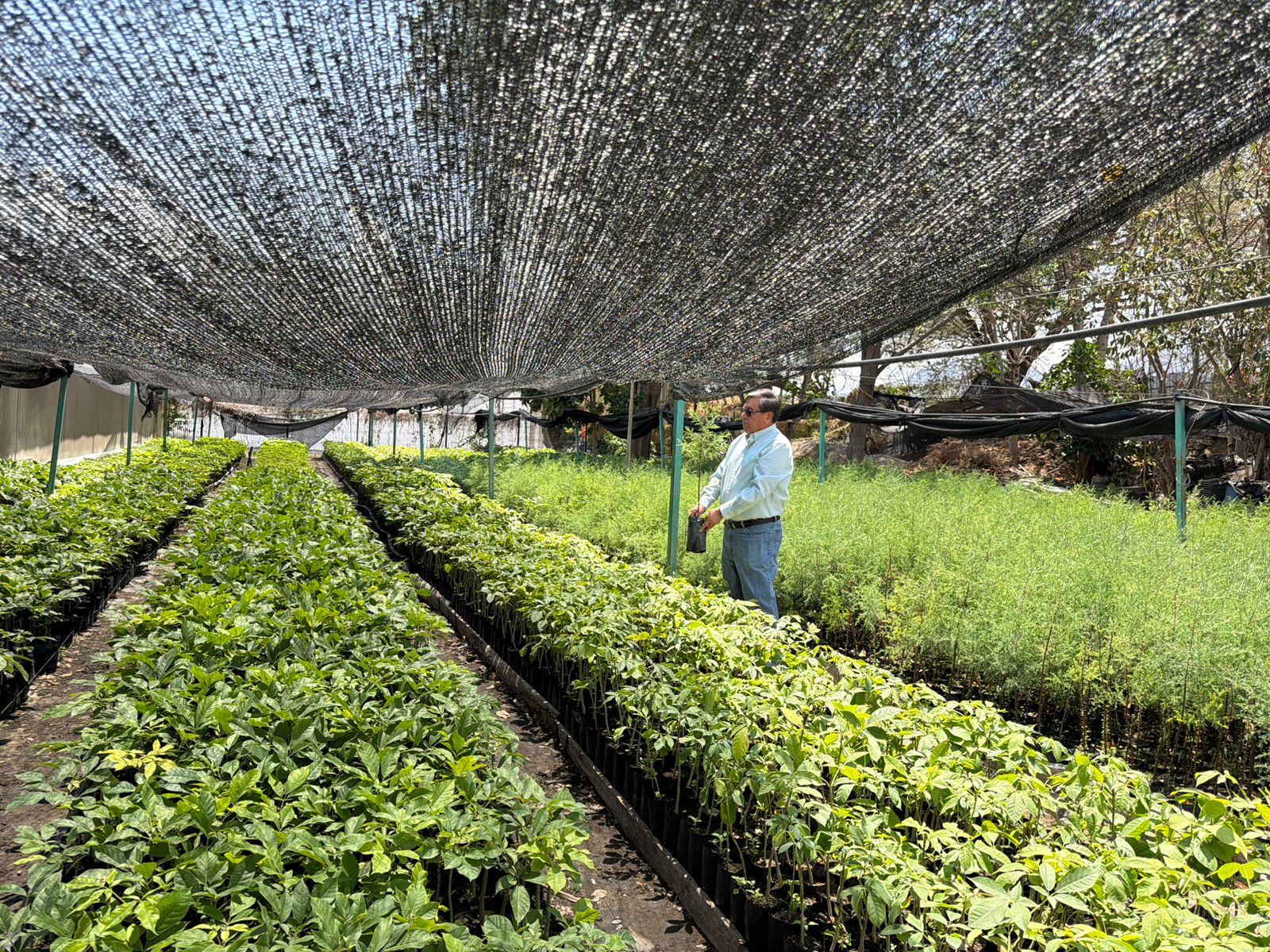 Durante la visita, el funcionario estatal verificó los avances y las condiciones de sanidad y manejo de más de 300 mil plantas de especies como pino pseudostrobus, pino oocarpa, cedro blanco, roble rosa, roble amarillo, parota, güeje blanco, cacahuananche, guamúchil y caobilla, las cuales serán utilizadas en las jornadas de reforestación en distintas regiones de la entidad.