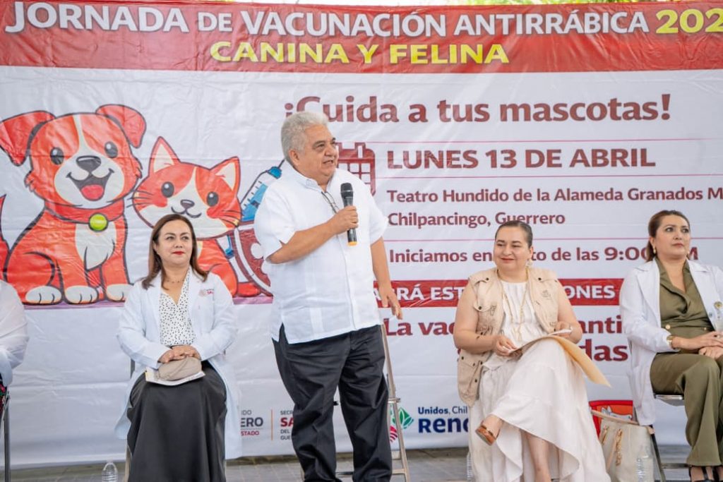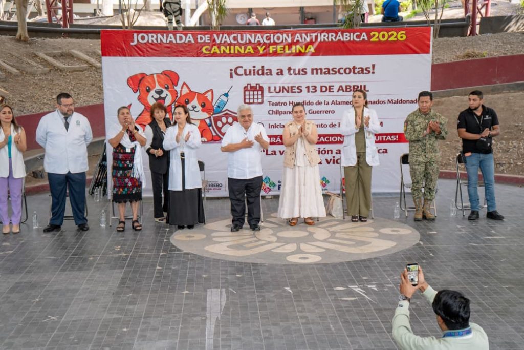 Chilpancingo, Gro., 13 de abril de 2026. — Con el objetivo de proteger la salud de las familias capitalinas y sus mascotas, el presidente municipal de Chilpancingo, Dr. Gustavo Alarcón Herrera, acompañó a la Secretaria de Salud del Estado, Dra. Alondra García Carvajal, en el arranque oficial de la Jornada Antirrábica Canina y Felina 2026.