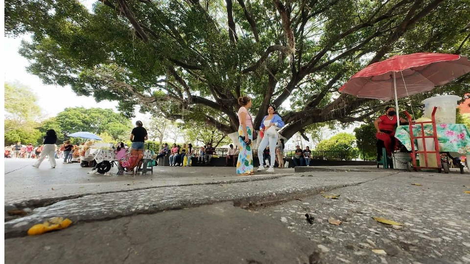 Entre el árbol del Huevón y la Iglesia de la Asunción de María la plaza cívica tiene una diferencia entre las planchas de concreto de alrededor de 10 centímetros, que se extiende por más cinco metros, pero es poco visible porque le fue colocado un chaflán de cemento.