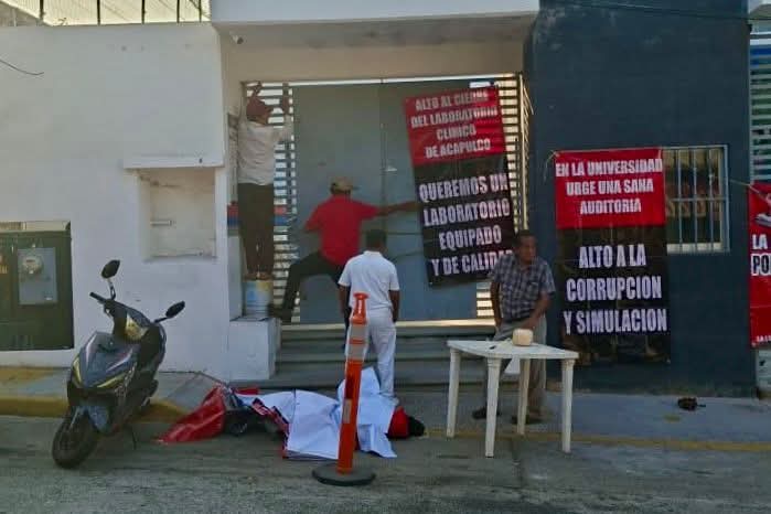 Se trata de trabajadores de Análisis Clínicos de los laboratorios de la Máxima Casa de Estudios que realizaban una protesta en demanda al rector Javier Saldaña Almazán de insumos y mejoras a las instalaciones