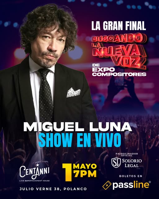 Vale la pena agregar que La Gran Final de “Buscando la Nueva Voz de Expo Compositores”, contará con el show íntimo del Maestro Miguel Luna para redondear este evento.