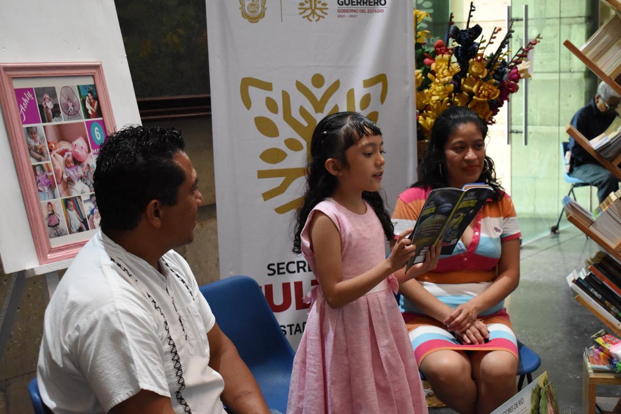 Posteriormente, las y los participantes disfrutaron de la “Lectura de cuentos”, a cargo de Ashly González Quiroz, de 8 años de edad, estudiante de tercer grado de primaria y acompañada de sus padres, compartió su gusto por los libros, así como historias fantásticas con el público asistente, quienes echaron a volar su imaginación.