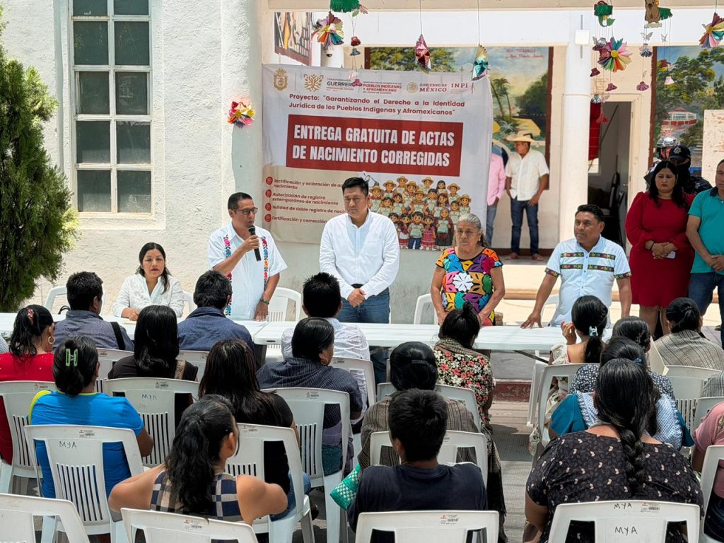 Copalillo, Gro, 22 de abril del 2026.– Con el objetivo de garantizar el derecho a la identidad jurídica de la población, el secretario para el Desarrollo de los Pueblos Indígenas y Afromexicanos (SEDEPIA), Abel Bruno Arriaga entregó certificaciones y aclaraciones administrativos de actas de nacimiento en el municipio de Copalillo.