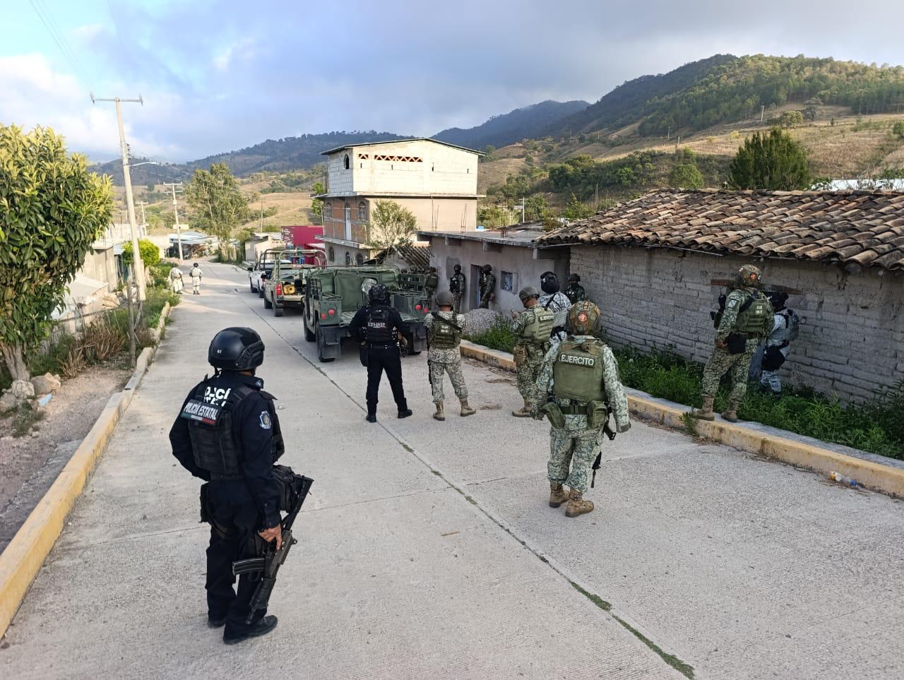 Elementos de la Policía Estatal, en coordinación con el Ejército Mexicano y la Guardia Nacional, mantienen presencia permanente en la localidad de San Jerónimo Palantla, municipio de Chilapa de Álvarez, con el objetivo de reforzar la seguridad y brindar atención inmediata a la población en caso de ser necesario.