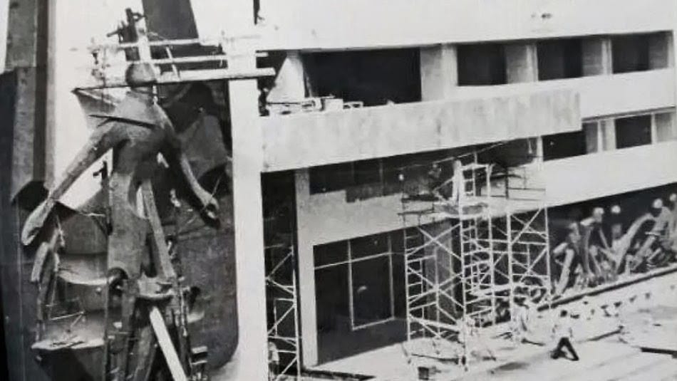 El entonces gobernador Israel Nogueda encargó al escultor Víctor Manuel Contreras darle el toque final a la estética del edificio, fue entonces que a medida del inmueble se diseñaron las esculturas el Hombre al Futuro y Canto al trabajo, que aunque ya están en su sitio original se mantiene en la plaza Primer Congreso de Anáhuac de Chilpancingo.