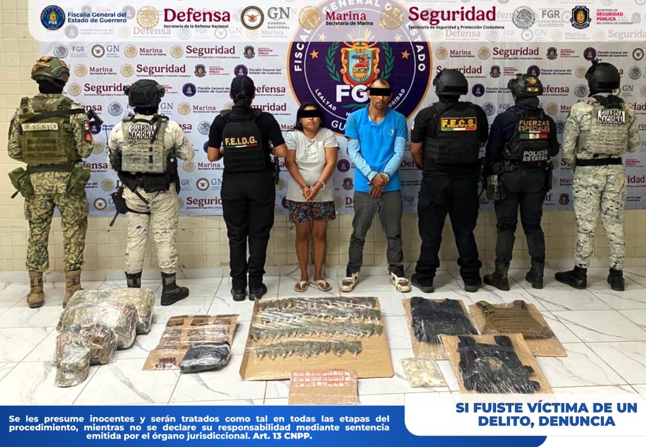 Chilpancingo, Gro., a 24 de abril de 2026.— La Fiscalía General del Estado de Guerrero (FGE Guerrero) informa que personal de esta institución, en coordinación con la Secretaría de la Defensa Nacional (DEFENSA), Guardia Nacional (GN), Secretaría de Seguridad y Protección Ciudadana (SSPC) y Policía Estatal (SSPGro), detuvo en flagrancia a Silvano “N” y Marcela “N”, en el municipio de Juan R. Escudero.