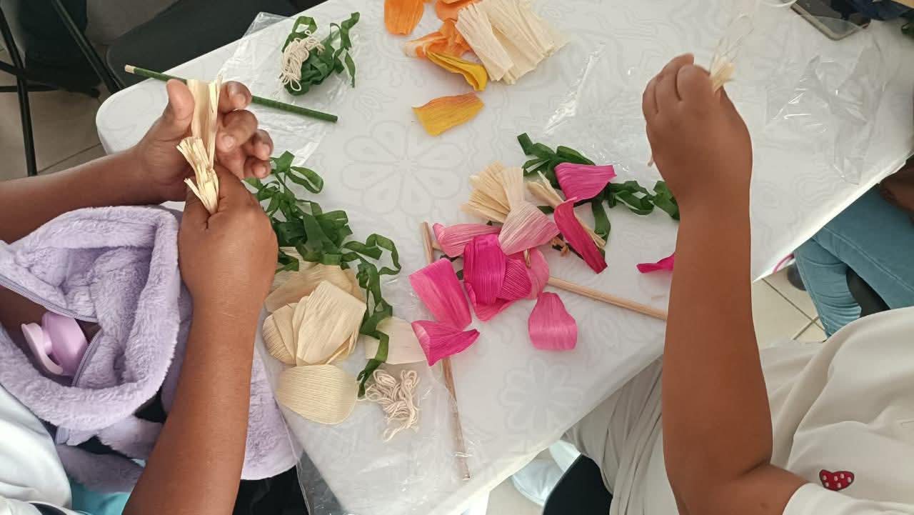 Como muestra de este impulso, durante el primer día se desarrollaron talleres de flor de hoja de maíz, pomada de caléndula, elaboración de mazapán y chocolate, así como limpias tradicionales y pulseras de chaquira, acercando al público a los saberes ancestrales y al valor del trabajo artesanal.